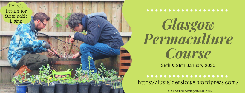 The next Glasgow Permaculture Design Course is starting soon with the introduction/module one on 15th & 16th October 2022. Once you have completed this module, you can sign up to do one weekend per month from February to June 2023 in order to receive your Permaculture Design Course certificate from the Permaculture Association. More info in the courses section of this website which has course details (prices, dates, content overview), biographies (of the main teachers), detailed information about each module, directions to venues and hear what previous course participants said about the course. Enjoy!