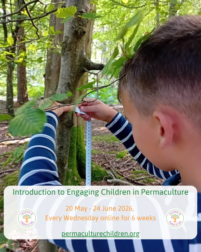- Introduction to Engaging Children in Permaculture : This is a specialist course for educators: parents, primary school teachers, nursery/kindergarten teachers, grandparents, Forest School leaders, Scout/Guide Leaders and anyone else interested in the education of children. It is generally a 12 hour introductory course. We are also developing a longer practitioners and then training of teachers course. For more info, please see the Permaculture Children website.
