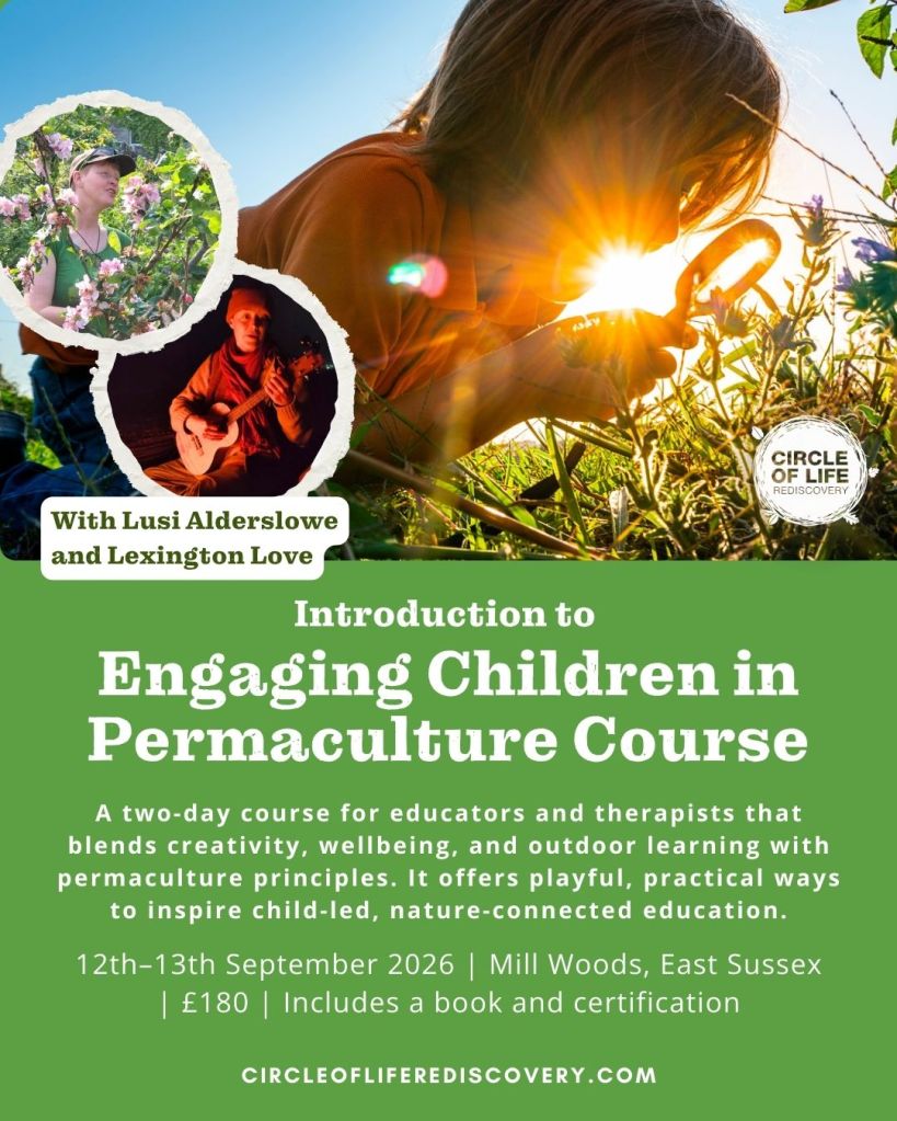 - Introduction to Engaging Children in Permaculture : This is a specialist course for educators: parents, primary school teachers, nursery/kindergarten teachers, grandparents, Forest School leaders, Scout/Guide Leaders and anyone else interested in the education of children. It is generally a 12 hour introductory course. We are also developing a longer practitioners and then training of teachers course. For more info, please see the Permaculture Children website.