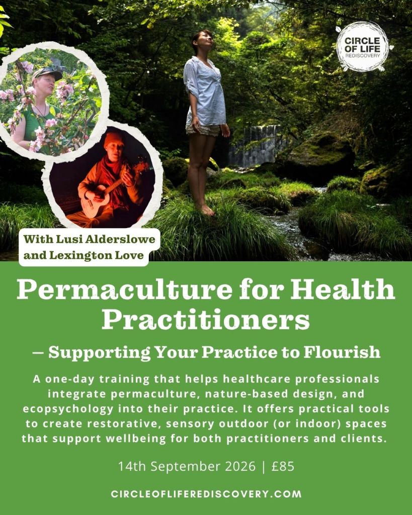 A one day training that helps healthcare professionals integrate permaculture, nature-based design and ecopsychology into their practice.