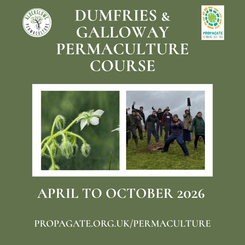 - Full Permaculture Design Course. This involves a minimum of 72 hours of taught time. In Findhorn Ecovillage, Lusi is working with Gaia Education to facilitate a 2 week residential course. In southwest Scotland in 2025, Lusi is working with Propagate to run two courses which are half online and half in person over 6 months, with the in person elements taking place on a Saturday. There are two of these courses – one in Glasgow and one in Dumfries & Galloway. Lusi has been invited to teach on other courses from Ireland to the Highlands to England, so I’m open to being invited elsewhere to teach!